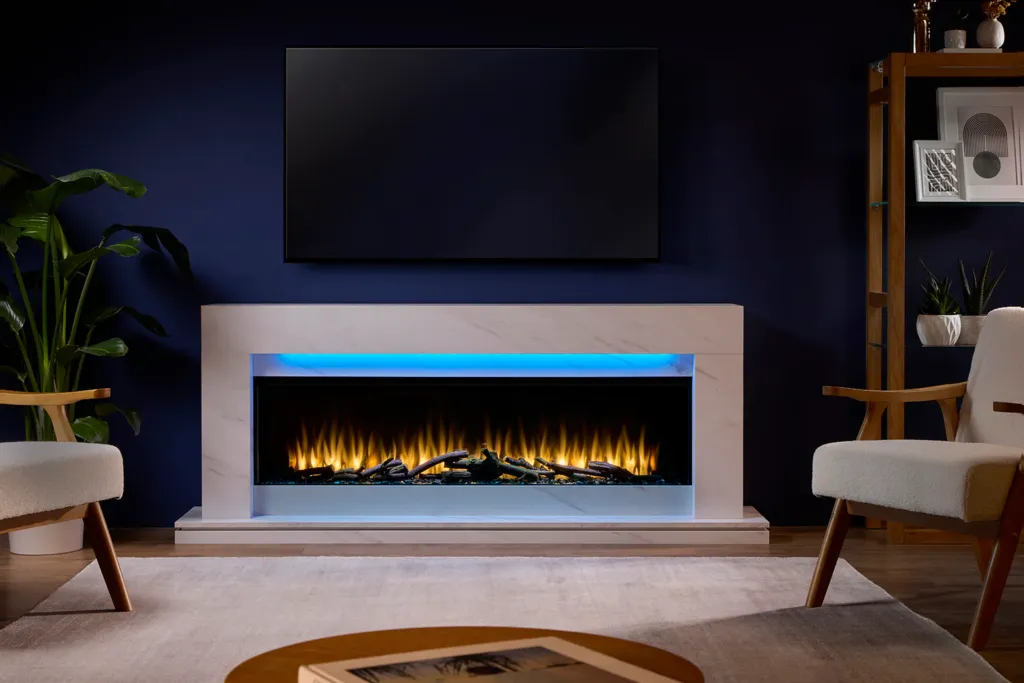 - Realistic live flame effect with three colour options each available with four mood settings